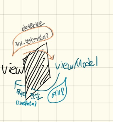 1. View는 ViewModel의 상태변화를 Observing (model에 변화가 생기면 ViewModel단에서 데이터를 가공하여 View에 전달 해준다. -> View는 그 데이터를 받아서 UI에 적용만 ==> 화면이 변경되어도 뷰모델은 바뀌지 않아도 된다.)